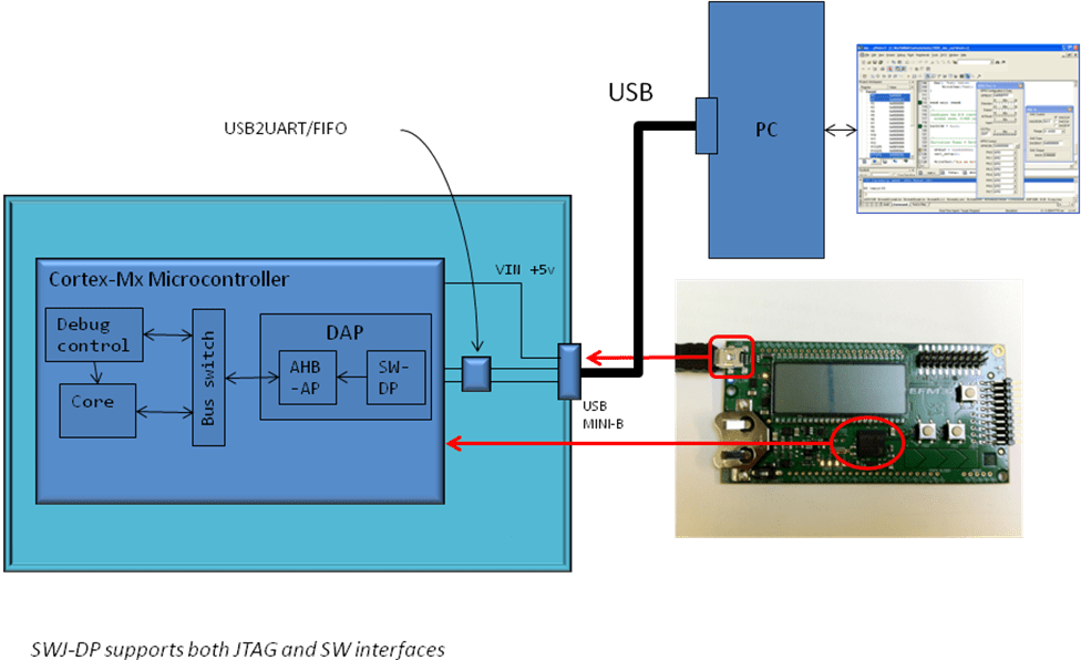 JTAG units, such as the Keil ULINK, have made target programming and source-level debug very affordable. However, for small pin count micros, the 4-wire JTAG is seen as quite expensive option (in terms of pure pin-count). As part of the Cortex-M core is support for a new serial-wire interface. The advantage being that it only requires 2-wires, which makes it very easy and affordable to support debug (and power) over a simple USB connection.