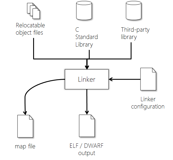 - The linker operation is controlled by a configuration file, unique to the target system.